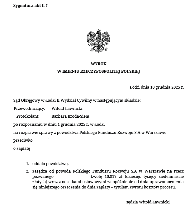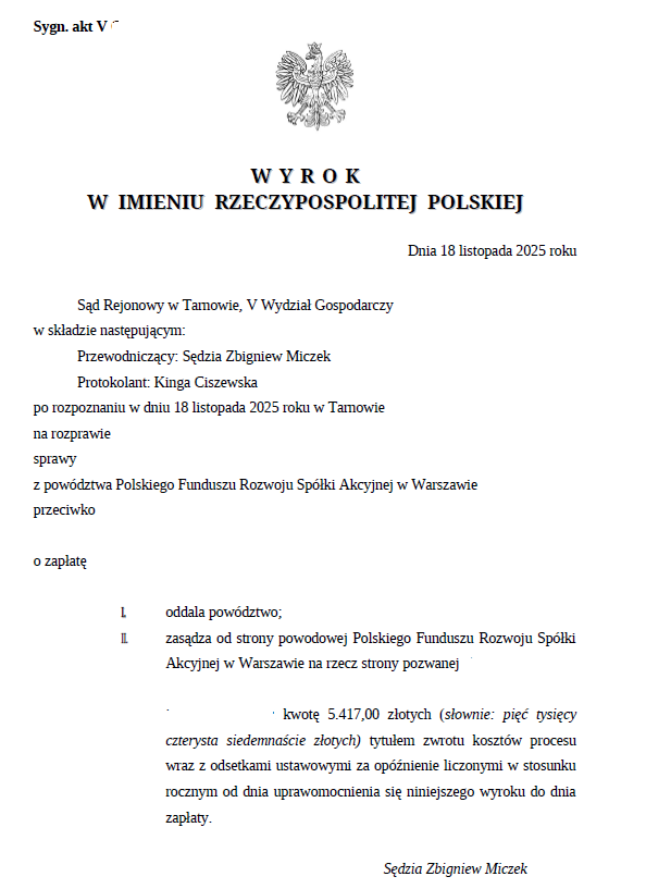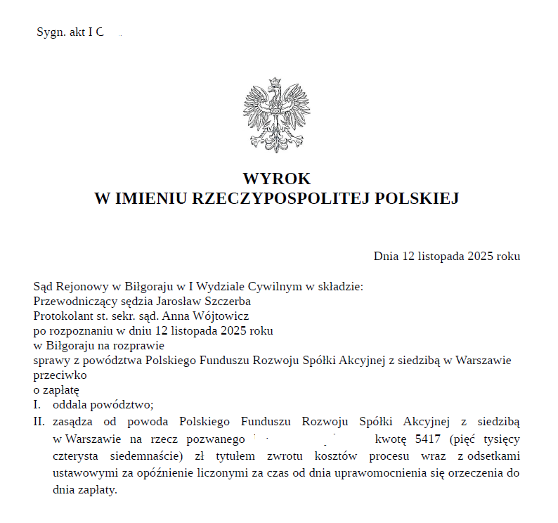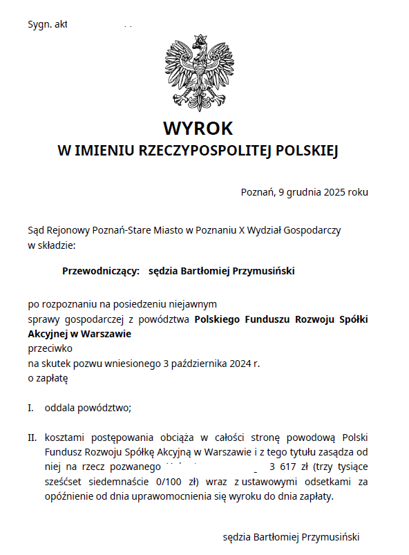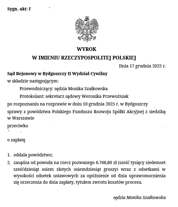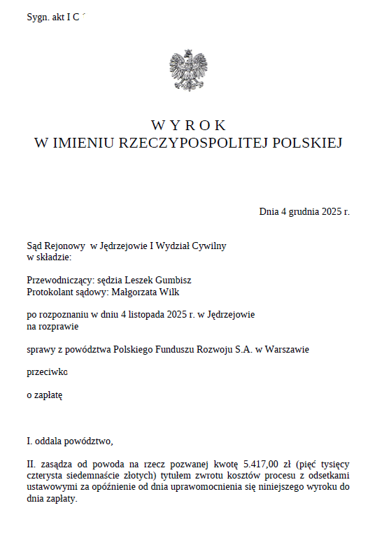Tak kończą się w praktyce żądania PFR na drodze sądowej.